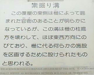 東西二つの排水溝の跡が、保存処理を施して当時のままに展示されている、地下3m程に掘られた本格的な排水処理施設であ