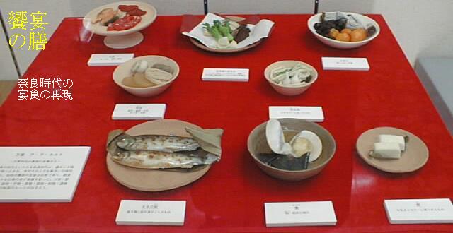 「筑紫万葉」時代の貴族達の食べ物。九州一円からの租税の多くは特産品で納められていた。これは平城宮でも同じであった。