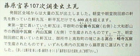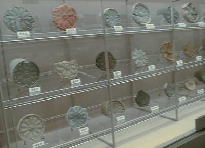 エントランスを抜けていくと「基準資料室」と書いた部屋があり、藤原宮や周辺建物跡から出土した瓦が展示してある。
