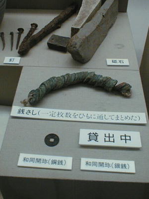 でないものの、その当時銅銭1牧で米1.8kgが買えたようだ。また、右京二条三坊では分銅(26.762g)が出土し、当時の度量