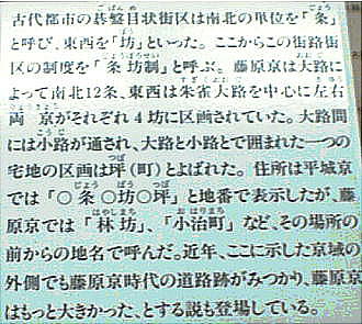 藤原京は道によって区画された都市と言える。東西道路を「条」、南北道路を「坊」という区分により南北十二条、東西計