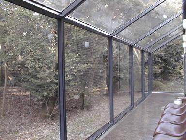 博物館の休憩室からは外が見えるようになっている。「蜆塚遺跡公園」の森がすぐ側まで来ている。