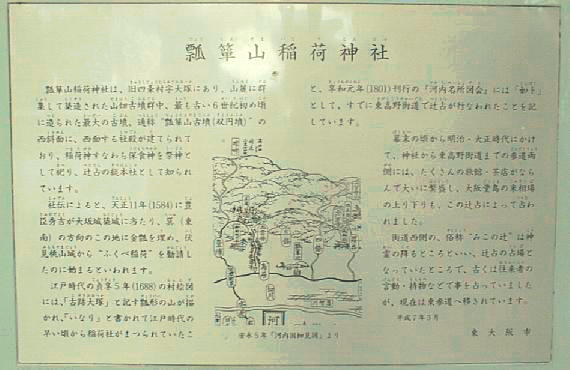 駅前の商店街を抜けていくと「瓢箪山稲荷」神社にでる。この神社の神域全体も古墳である。神社を抜けて急な坂道の