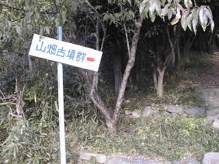 山畑(やまはた)古墳群は、客坊谷(きゃくぼうだに)の南側、高さ15mの瓢箪山神社付近から高さ 140m前後の位置に