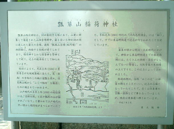 駅を出て、商店街の中を2,3分歩くと稲荷神社にでる。この神社そのものも古墳のようだ。郷土資料館へは、この神社の