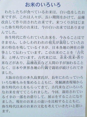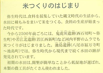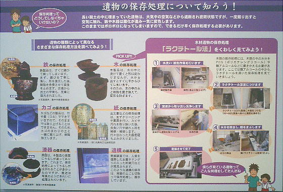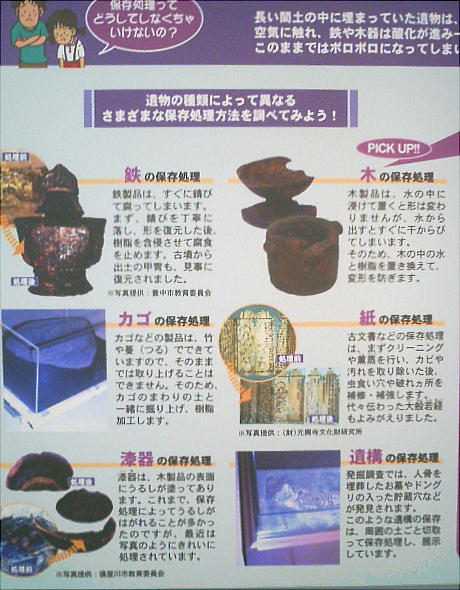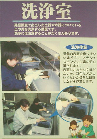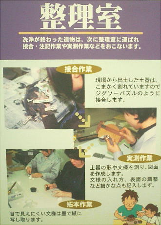 いや、おもしろいセンターだった。設備が整って展示場も広い神戸市の埋蔵文化財センターは、 おそらく近畿圏で一番の埋文ゼンターだと思うが、見学者に対する心くばりは、このセンター も決して負けていない。子供達に考古学を何とか分かってもらえるようにという努力が随所に 見られるし、見学後何かあたたかいものを感じるのは私だけではあるまいと思う。連休の初日 にいいものを見た。