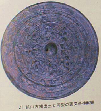 市狐山古墳では、鉄製の甲冑・刀・鏃などの豊富な武具・武器とともに、玉や中国製の鏡と銀製金具のついたベル