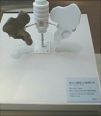 兵庫県だから当然、西八木海岸で発見されたいわゆる「明石原人」の腰骨のレプリカも展示されている。私の見解では「原