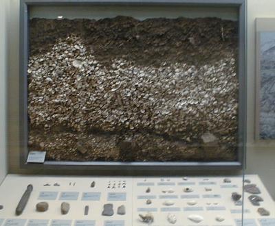 下左は、豊岡市の中谷貝塚(縄文中期中頃から晩期。4500〜2500年前)。ヤマトシジミが殆どだが、ハマグリ、マガキなど