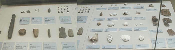 下右が中谷貝塚から出土した遺物群。左は、兵庫県下の縄文遺跡から出土する石器群。