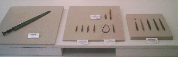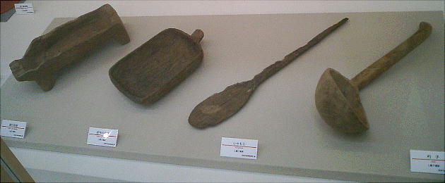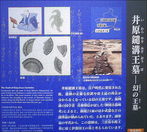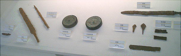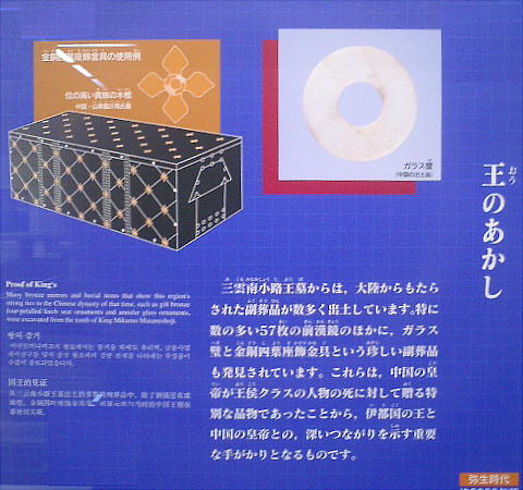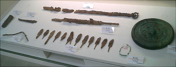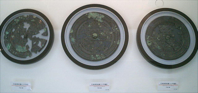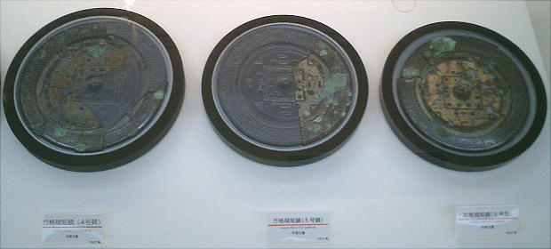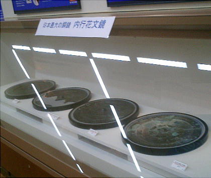 られた玉類、鉄製の大刀、木製農機具等がある。圧巻は展示室奥の中央にある、直径46.5cmの内行花文鏡である。