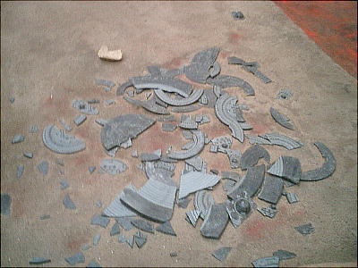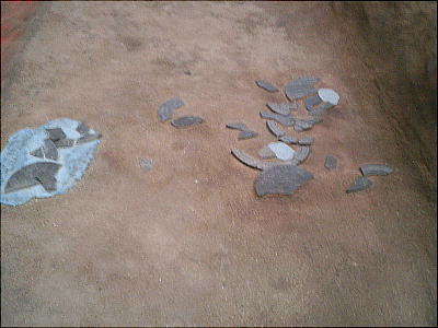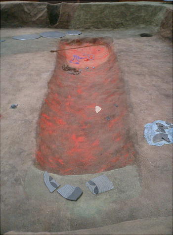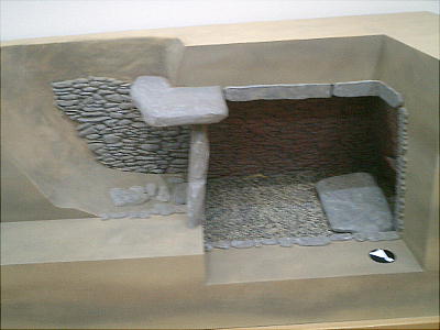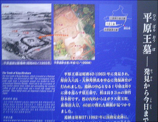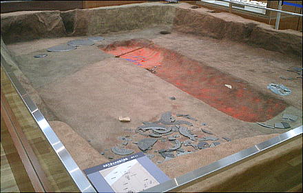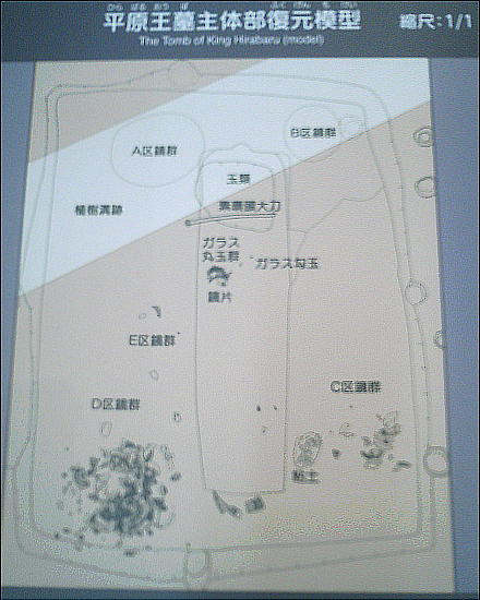 平原王墓復元模型(実物大)と、平原王墓・鏡破片出土状況復元模型(部分)