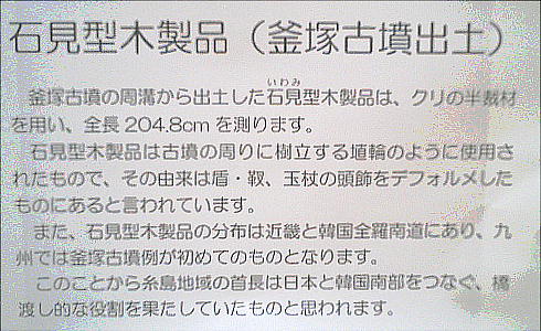 これは今だに日本最大の銅鏡で、何度見てもその巨大さには驚かされる。前原駅前にある観光案内所にはこのレプリカが