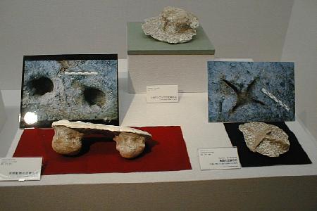 上と下、太古の動物の足跡の化石。