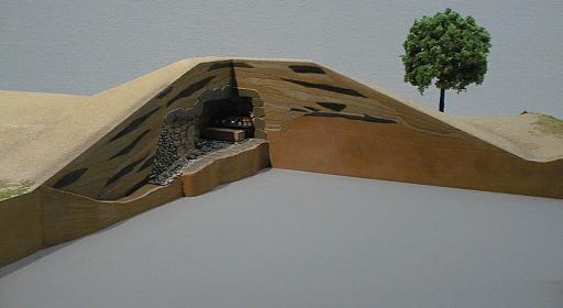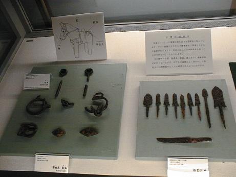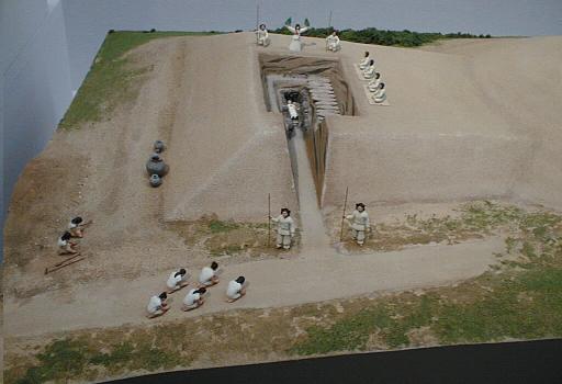 れている。模型で見ると、古墳内部の様子や武具・馬具の並べ方などがよくわかるようになっている。又断面からていね
