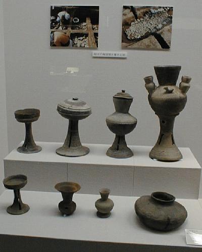 左は「装飾壺付器台」(上段右端:信太千塚姫塚古墳)を初めとする須恵器群。