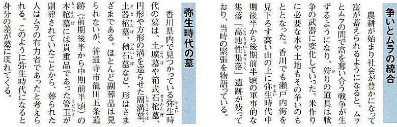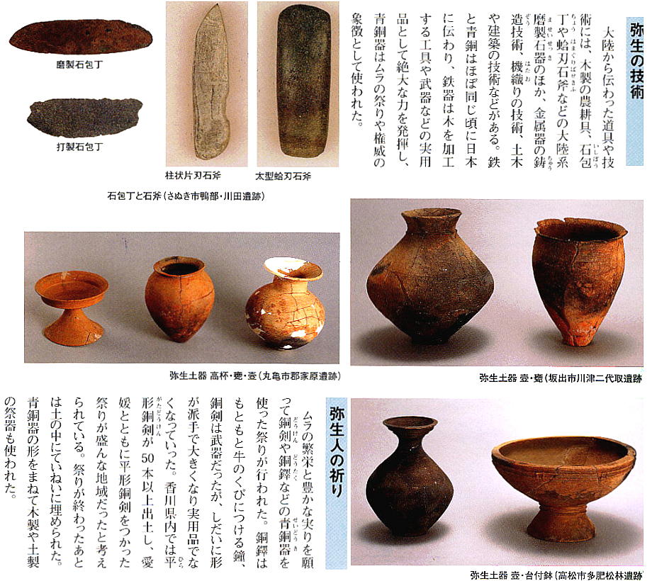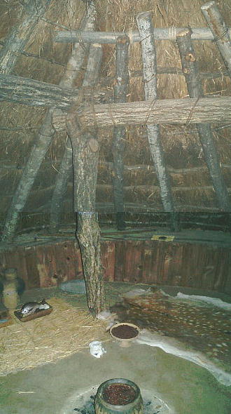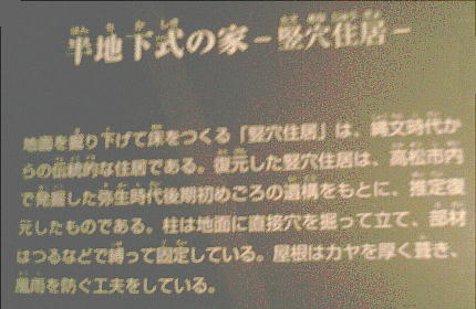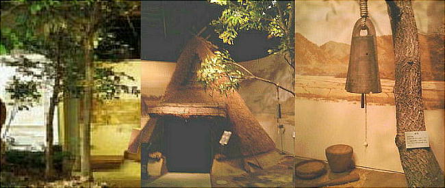 弥生人が暮らした、復元「竪穴住居」には、自由に入ることができる。いろいろなモノが置いてあるのでさわって確めてみ ることもできるし、弥生時代を身近に感じて、しばし弥生人になる事もできる。あなたの先祖もはるか昔に、絶対こういう 家で暮らしていたのだ。今はクーラー付きの瀟洒なマンション暮らしかも知れないが、あなたの体の中にはこういう家に生 まれ、そこで一生を終わって死んでいった祖先の血が流れているのである。あなたが今この世に存在しているのは、その先 祖のおかげなのである。
