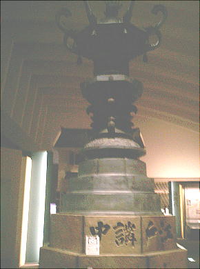 高さは銅製燈籠本体で約5.4m、石の基壇部を含めて約6.9mあり、本体基壇には町人だけでなく、武家や農民など1385