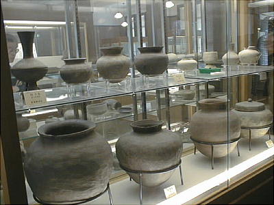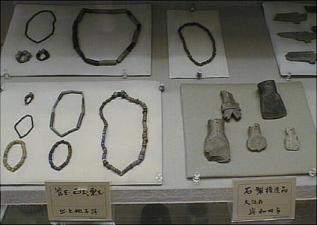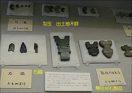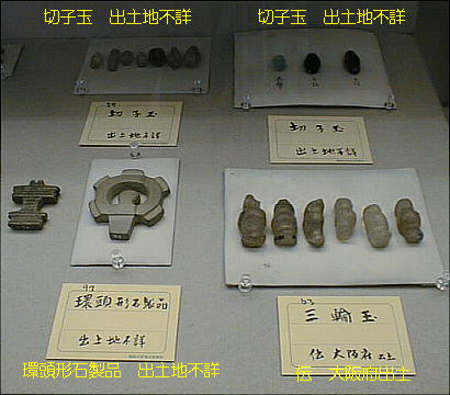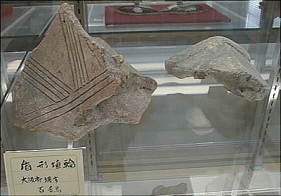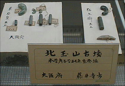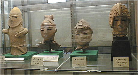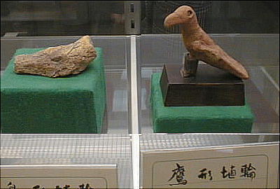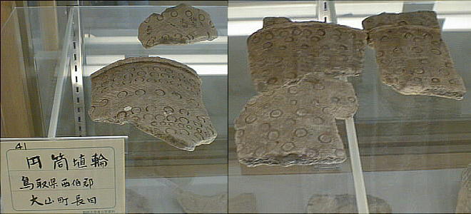 上左の埴輪群は左から、出土地不詳、埼玉県熊谷市上中条出土、埼玉県熊谷市上中条出土、茨城県那珂郡東海村出土と それぞれ伝えられる。