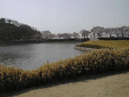 資料館の裏手にある灌漑池の廻りでは桜が満開。