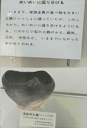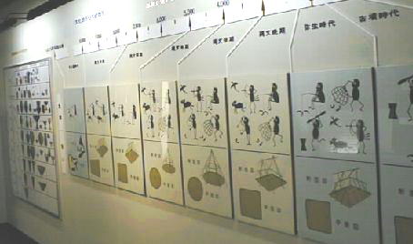 縄文土器などが、東京湾の周辺に住んでいた縄文人の生活の跡が理解しやすいように、多くのパネルや写真とともに