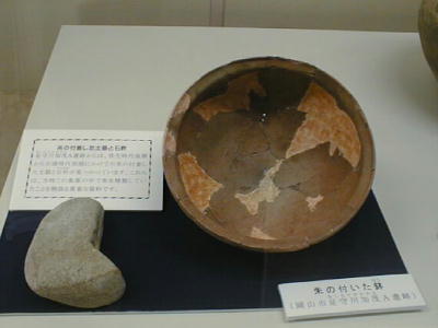 土器が発見されている。籾痕の付いた土器としては最古級のもので、他にも鍬(くわ)として用いたような石器や、弥生時代の石
