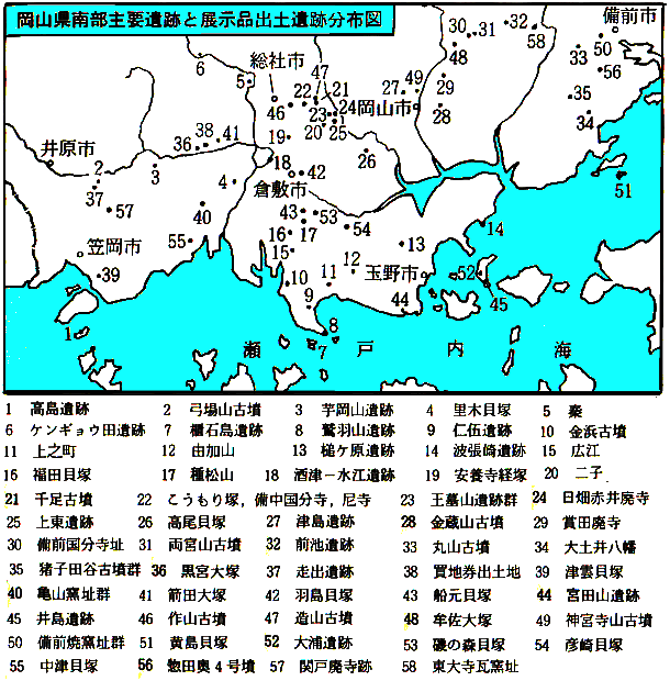 代と続く期間の考古資料である。特に、岡山県と、広島県の東半地域は昔「吉備」と呼ばれ、遺物から、過去相当な