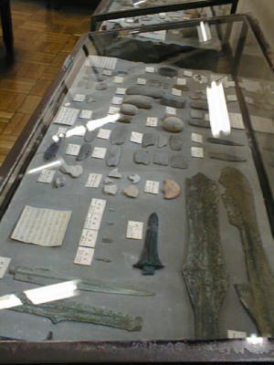 考古館の陳列品は、倉敷市をはじめ、瀬戸内海に面した岡山県一帯の、旧石器時代から、縄文・弥生・古墳・歴史時