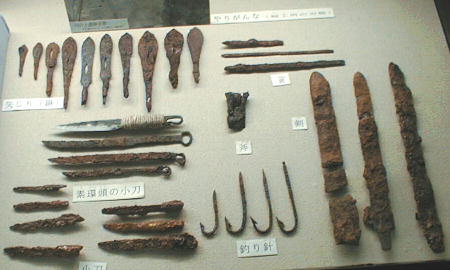工した円盤2個、鉄剣、鉄戈、瀟子(しょうす:ピンセット状の鉄器)がみつかった。これらから、ここが弥