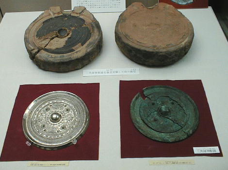 査で弥生時代中期後半の10号甕棺から内行花文精白鏡・日光鏡という二つの前漢鏡、ガラス壁(へき)を加