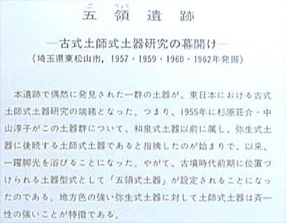 代前期(4世紀)を中心とした古代農耕集落だった。出土した土器類は、当時東日本では珍しい特徴をもった土師期で「五