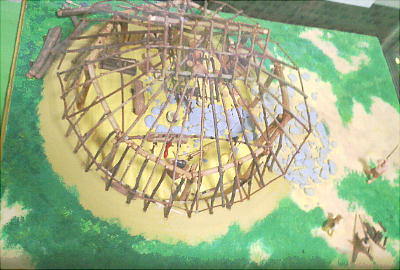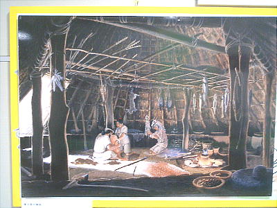 し草や毛皮が敷かれ、屋根は草葺きだったと思われる。囲炉裏の火棚では冬に備えて沢地川で捕獲された魚が