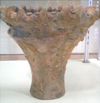 縄文土器は、およそ600〜800度の温度で焼かれた素焼きの土器で、中期になると装飾も立体的、躍動的