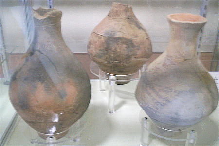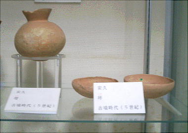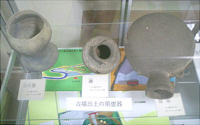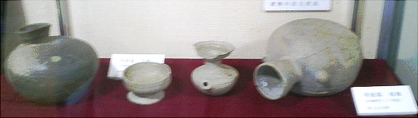 安久遺跡出土の須恵器(上下)。この遺跡は一辺が6mの方形住居跡。6世紀末頃の瓶や椀が出土した。