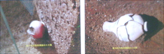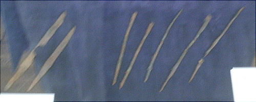 は腐っていたが、棺内には鉄剣4本と鉄鉾1本、直刀2本、鉄鏃(てつぞく)が34本束になって発見され