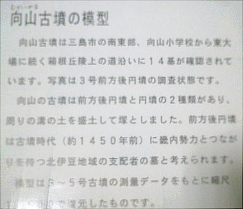 三島市内で最古の古墳は、向山小学校建設に伴って発掘された「向山古墳」である。直径22mの円墳で、