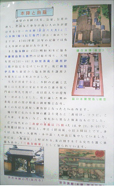 は、問屋場、本陣、脇本陣、旅籠、木賃宿などの施設が整えられていた。ここ三島宿も同様、慶長6年(1601)