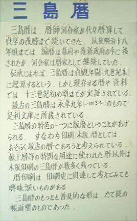 その為「三島」の名前は全国に広まったとも言われる。やがて、伝統ある「三島暦」も、明治6年の太陽暦の