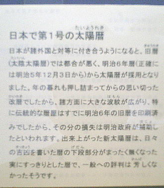 日本では明治6年(1883)正月から、主に西欧諸国で用いられていた現在の太陽暦と24時間新時刻法が採り