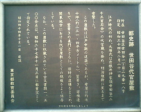 東京都指定史跡・国重要文化財「世田谷代官屋敷」は、江戸時代に彦根井伊家領世田谷(2300石余)の代官職を務め、明治