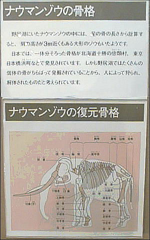 高さは約2m前後だが、野尻湖のものは2.3m〜2.7mなのですこし大きいことがわかる。また、オスのキバは長くて