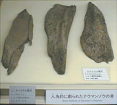 旧石器の剥片と加工痕のある化石骨の出現を見たからである。ナウマン象の牙とオオツノジカの掌状角が並列して出土し、