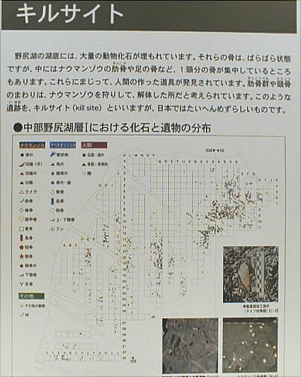 マンゾウの化石の散らばり方も自然ではなく、4万年前の野尻湖人(旧石器人類)たちは、ここでナウマンゾウを解体して