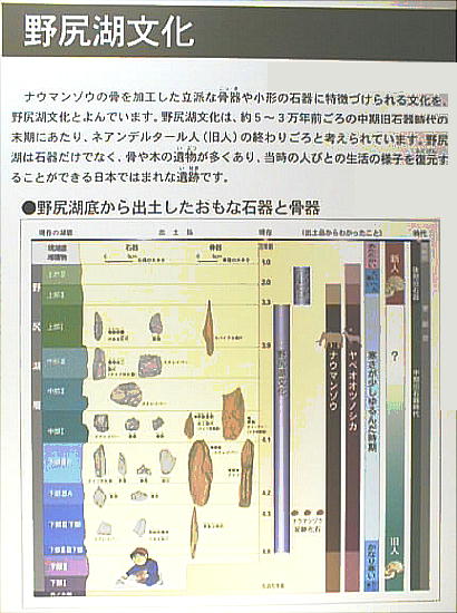 えられている。人類の化石はまだ見つかっていないが、彼らが残した道具は人類がかつて野尻湖でどんな生活をしていたか