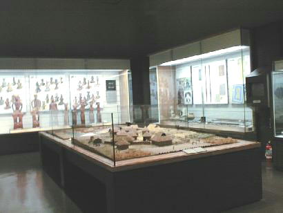 出土品は殆どがレプリカである。博物館発行の「展示案内」によれば、「研究の成果を展示に生かす。」