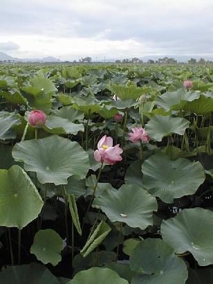滋賀県の草津市の上部、びわ湖大橋の南、琵琶湖博物館のすぐ近くに、ハスの群生地があるという情報を嫁半がどこからか