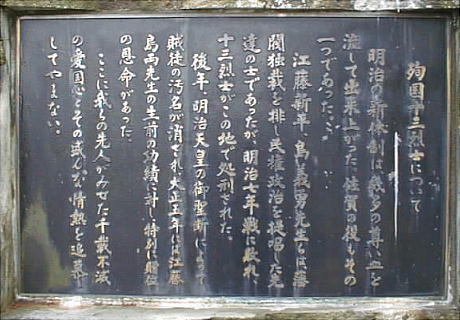 佐賀城内にもうけられた臨時裁判所で、自ら佐賀へやってきた大久保利通により、開廷してわずか5日で梟首の判決を言い