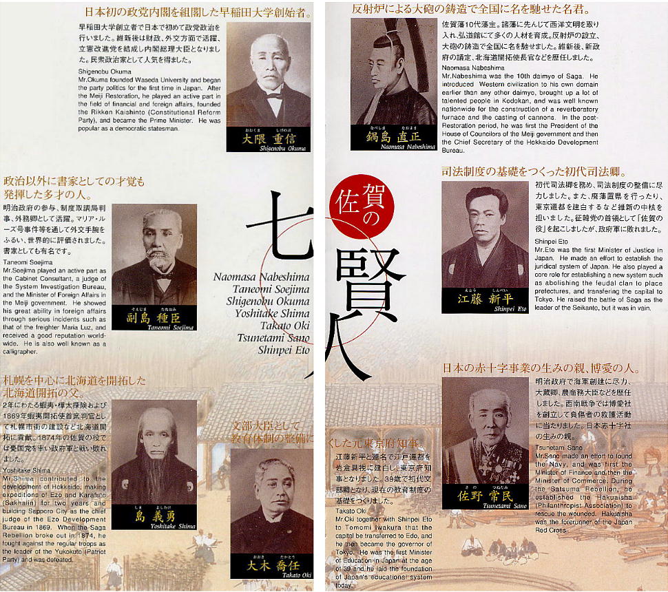 明治新政府で財政を担当し、やがて早稲田大学を興した大隈重信や、法務卿として司法制度を確立した江藤新平など多士済