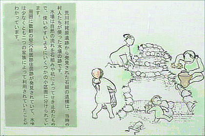 発見されました。このムラの特徴は、中央に天然のわき水を利用した水場の施設を持っていることです。水場はたんに飲み