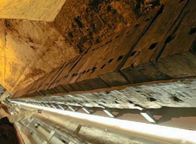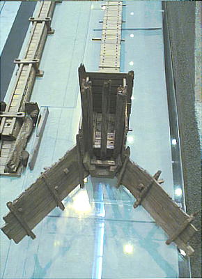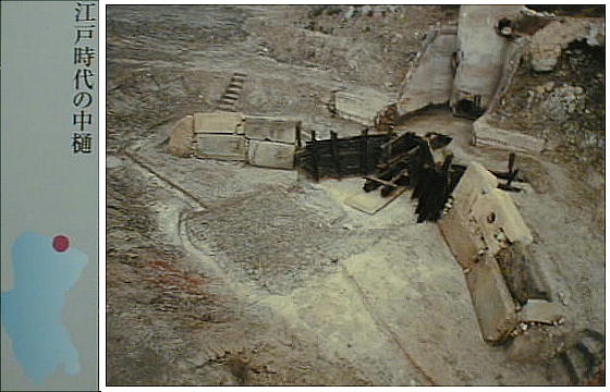 縮尺1/10の、江戸時代の「中樋」の模型(上)と実物(下)。